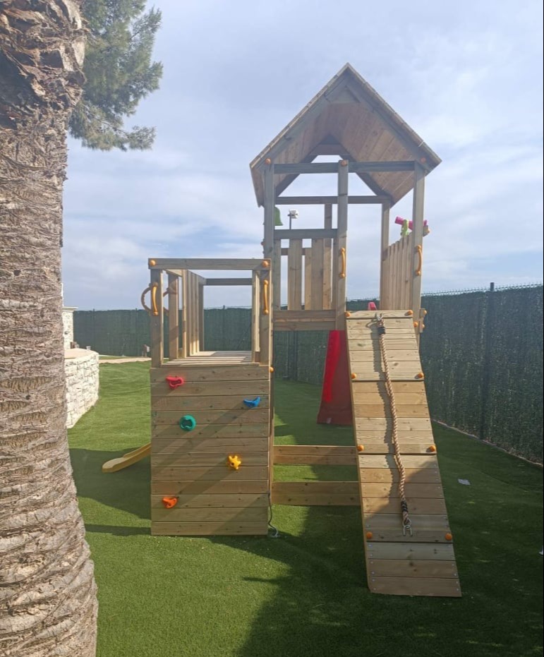 Οι ξύλινες κατασκευές για παιδικές χαρές περιλαμβάνουν κούνιες, δοκούς αναρρίχησης, και άλλα παιχνίδια που έχουν σχεδιαστεί για να προσφέρουν στα παιδιά την ελευθερία να εξερευνούν, να παίζουν και να αναπτύσσουν τις κινητικές τους δεξιότητες με ασφάλεια. Αυτές οι κατασκευές συνδυάζουν την αντοχή του ξύλου με τον σωστό σχεδιασμό, ώστε να πληρούν τα αυστηρά ευρωπαϊκά πρότυπα ασφαλείας. Χρησιμοποιούμε υλικά υψηλής ποιότητας που προσφέρουν μακροχρόνια αντοχή και λειτουργικότητα, ενώ εξασφαλίζουμε ότι κάθε κατασκευή είναι ασφαλής και κατάλληλη για παιδιά όλων των ηλικιών.